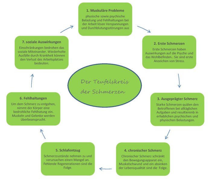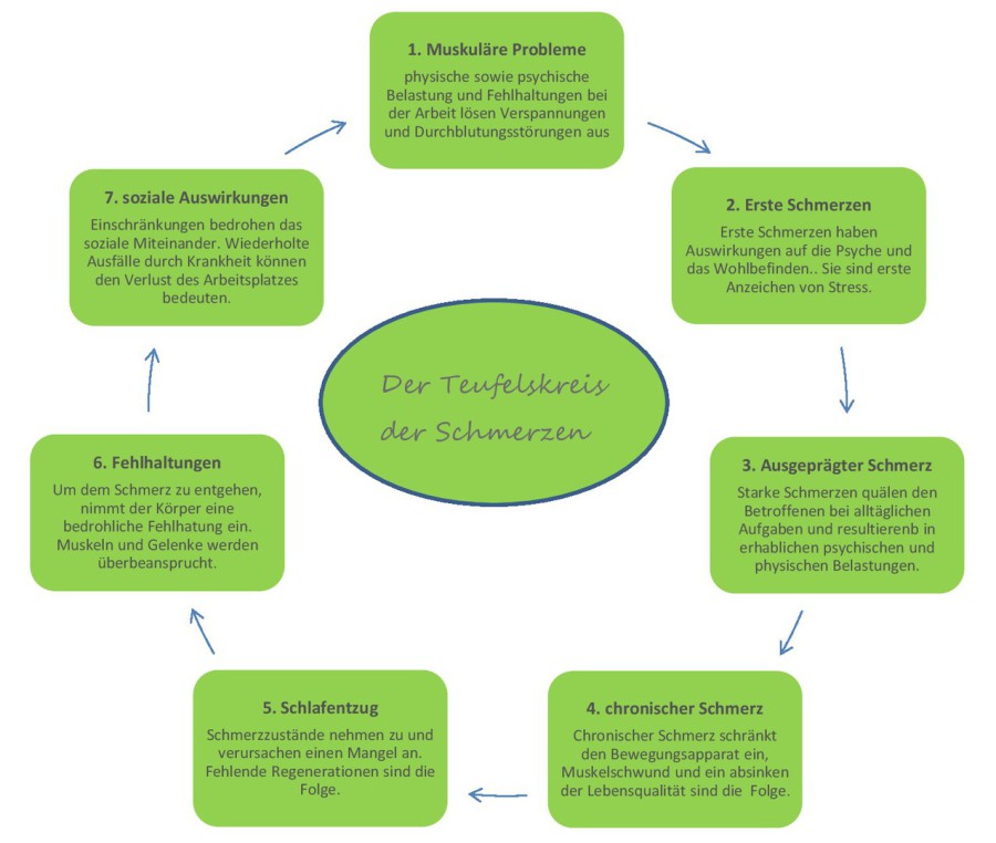 Wenn Schmerzen aber über einen längeren Zeitraum (min. 3 – 6 Monate) bestehen, ein genauer Auslöser nicht mehr vorhanden ist, dann verselbstständigt sich der Schmerz und verliert dabei seine grundlegende Schutzfunktion. Er wird meist zu einer Qual für den Betroffenen. In diesem Fall spricht man von chronischem Schmerz.
